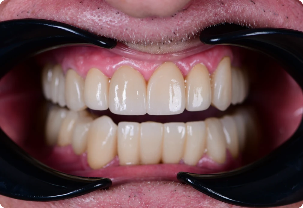 Pan Krzysztof zgłosił się do kliniki z powodu problemów stomatologicznych, w pierwszej kolejności odbył kompleksową diagnostykę jamy ustnej, dzięki czemu otrzymał cały plan leczenia i konsekwentnie go realizował. Jego motywacją do wizyty były estetyczne niedogodności związane z brakującymi zębami oraz chęć poprawy funkcji żucia. Podczas Konsultacji Protetycznej przeprowadzono dokładną ocenę stanu uzębienia pacjenta, zidentyfikowano obszary wymagające leczenia i zaproponowano odpowiednie rozwiązania, takie jak mosty i korony porcelanowe. Nowe zęby pozwoliły pacjentowi na nowo cieszyć się pięknym uśmiechem oraz dodały pewności siebie.