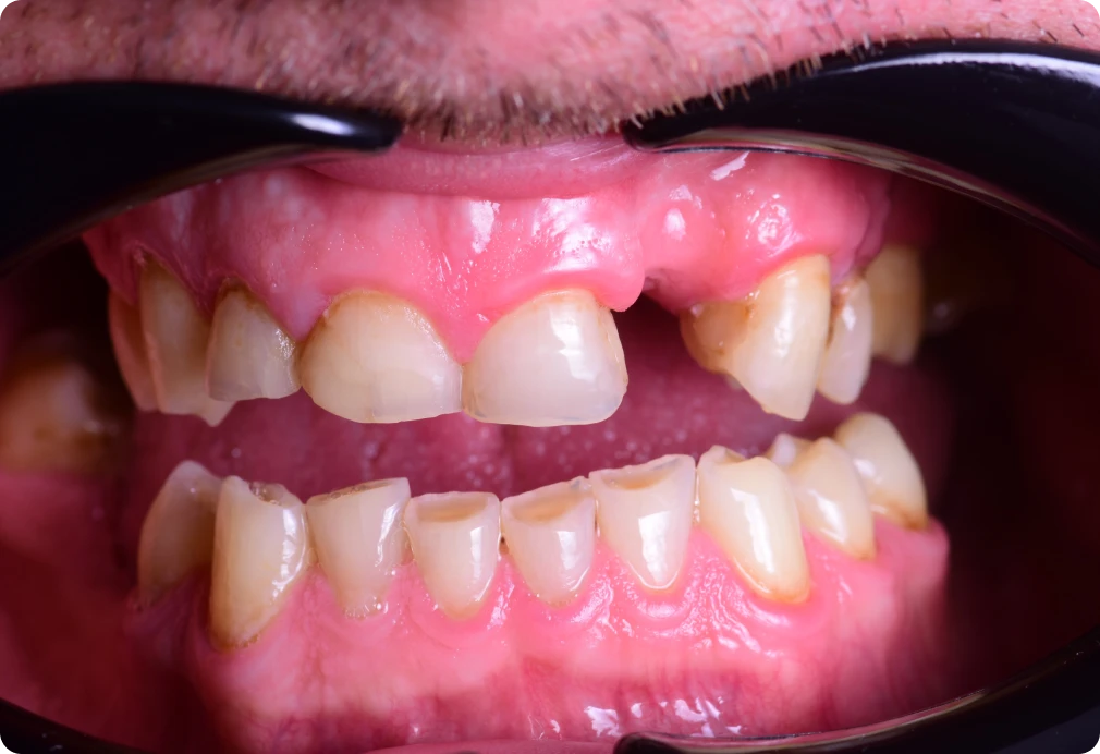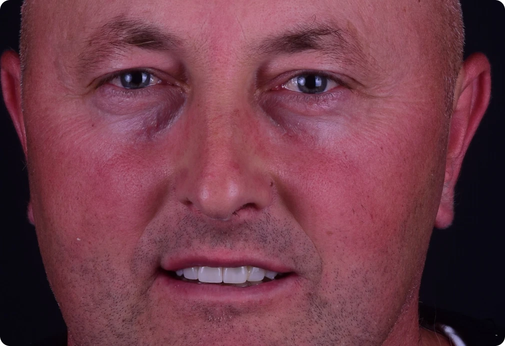 Pan Sławomir zgłosił się do naszej kliniki w celu poprawy i uzupełnienia brakujących zębów. Jest to doskonały przykład leczenia zespołowego obejmującego leczenie zachowawcze, kanałowe oraz chirurgiczne. Wykonanie koron i mostu porcelanowego w szczęce pozwoliło pacjentowi znów szeroko i pewnie się uśmiechać.